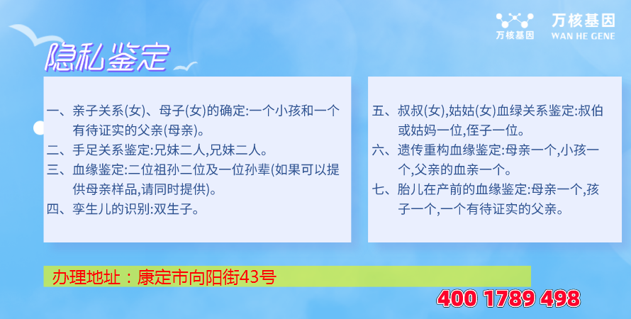 可咨范围:司法亲子鉴定、产前亲子鉴定、甘孜个人dna亲子鉴定、移民亲子鉴定、入户亲子鉴定、中考报告亲子鉴定、高考亲子鉴定等。